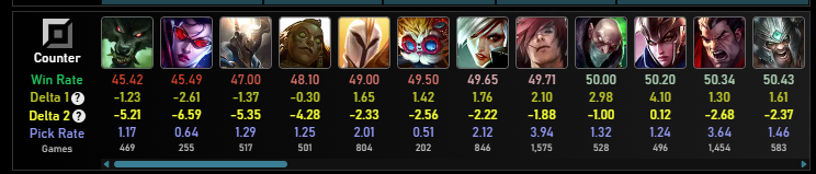 ダリウス相手はいつも統計サイトだと50%を少し下回る勝率だ。