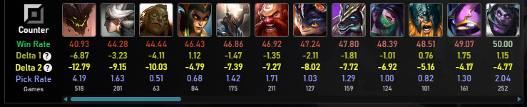 • 操作が比較的簡単です。 複雑なコンボは必要なく、オートアタックムーブ(通常攻撃しながら移動すること)ができれば十分なため、後出ししやすいチャンピオンです。