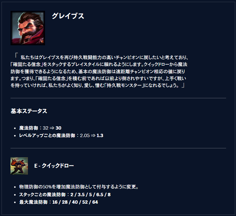パッチ25.20と25.21で調整を受けたグレイブス。