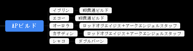 • アサシンチャンピオンのビルドは大きく「APビルド」「心の鋼ビルド」「ヒュブリスビルド」の3種類に分類して解説が進められています。