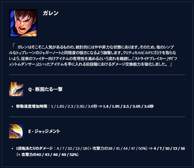 今回突然ガレンが大幅にバフされた。