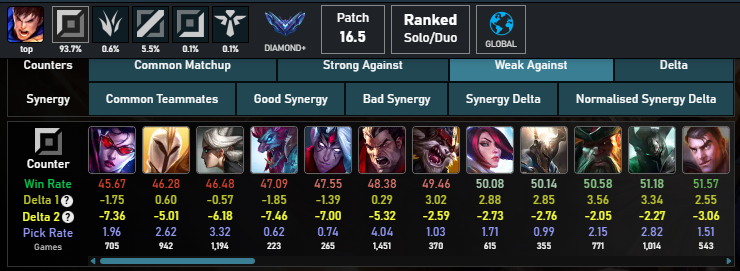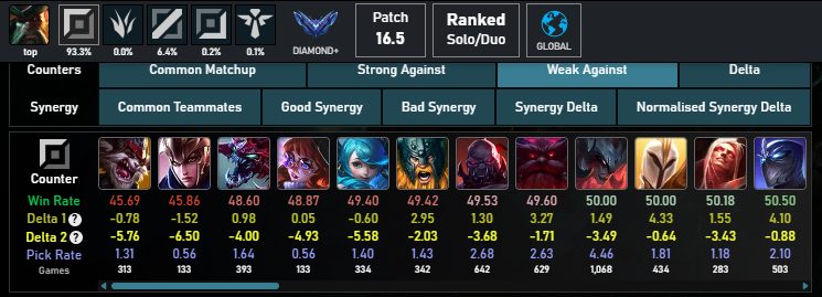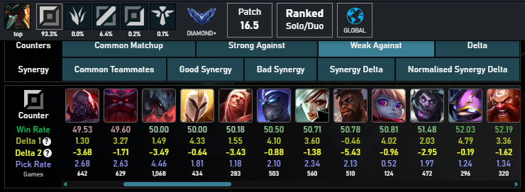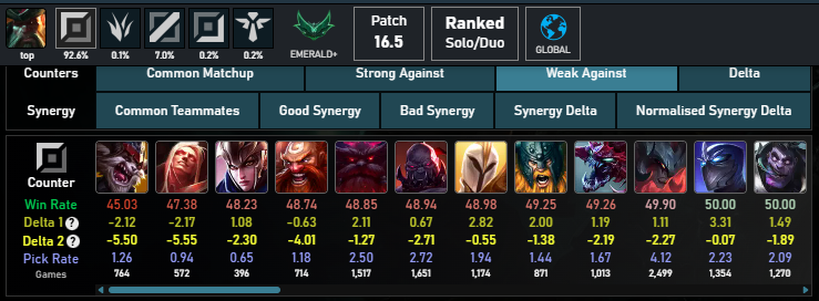 - 2.ガングプランクはステータスが低く、序盤のマナやスキル(樽)の回転率に制限があるため、攻撃をすべて受けきれるタンク系のチャンピオンを根本的に苦手としています。