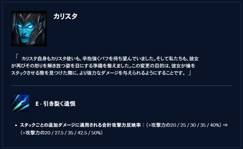 パッチ26.7でバフを受けたカリスタ。