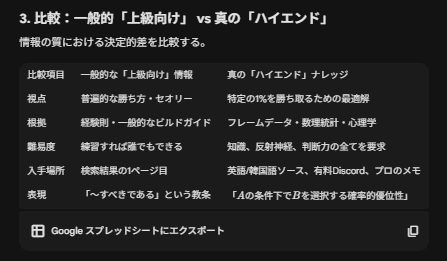 • 高度なゲームスキルと言語化能力を両立する人材は稀少であり、良質なハイエンド情報の供給は物理的に困難です。