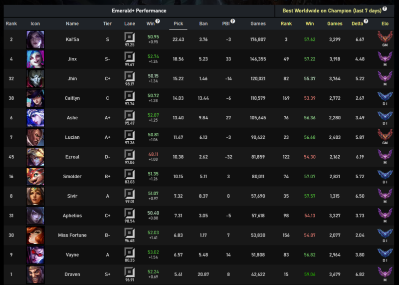ピック率順に高いチャンピオンを見ていって、10位まで出た時点で辞めた。